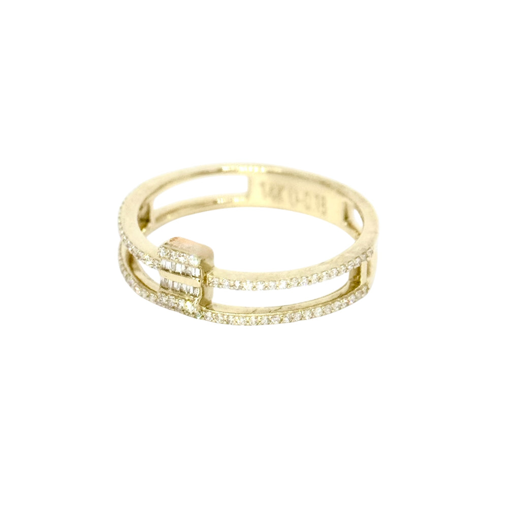 0.20ct Round & Baguette Natural Diamond Ring in 14k Yellow Gold
