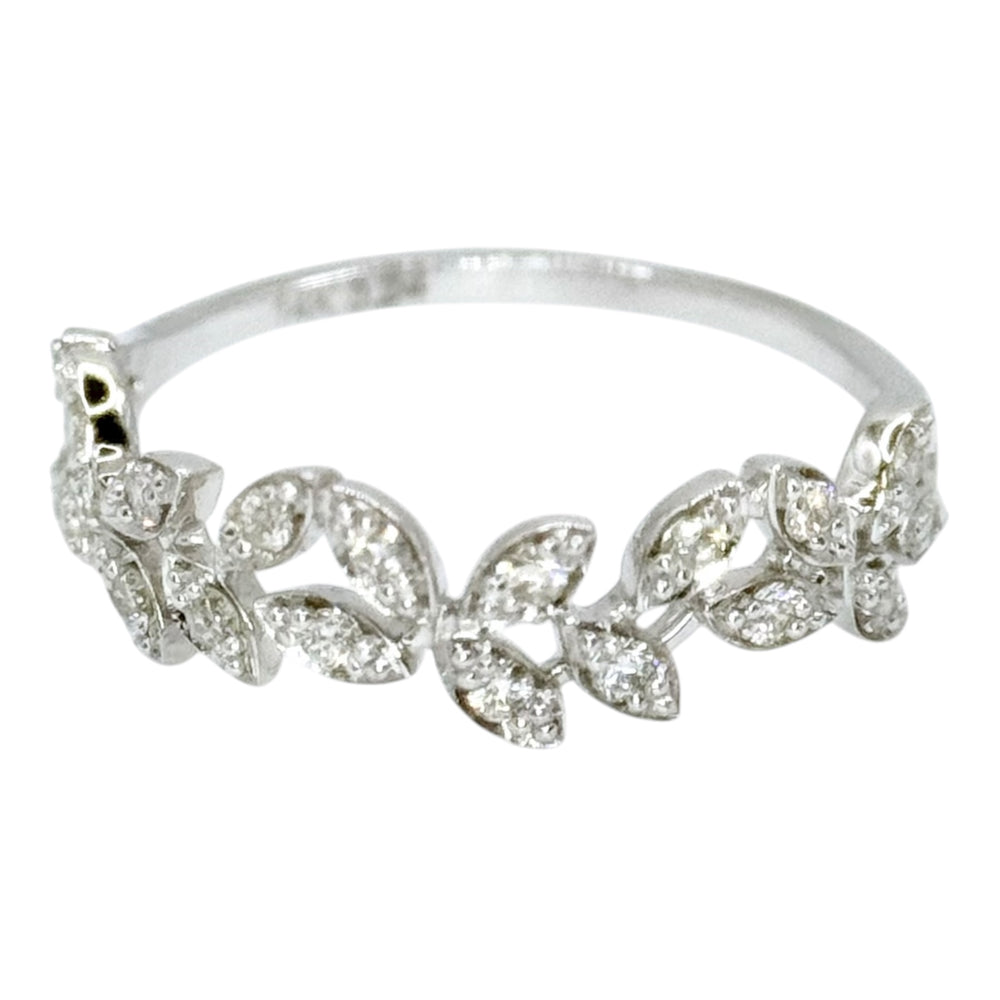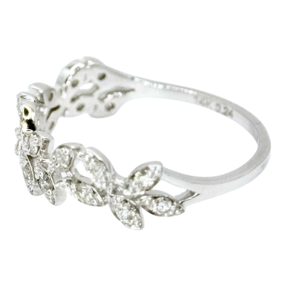 0.25ct Natural Diamond Pave Leaf Motif Ring in 14k White Gold