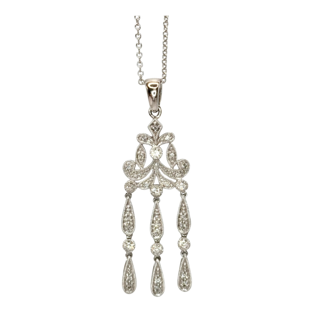 0.30ct Art Deco Natural Diamond Necklace in 14k White Gold